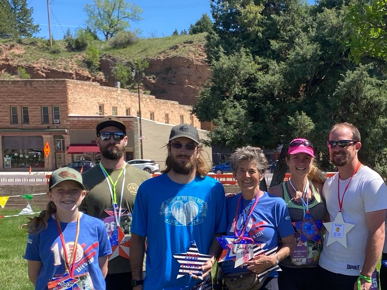 These are some of the winners of the Stars, Stripes & Steps Memorial Day Stair Climbing Race. (that's your Race Director in the middle pretending she won all those awards of folks who couldn't make the ceremony.)