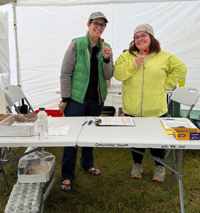 Volunteers Kay Birkholt and Caitlyn Mosset are shown here taking a well-deserved lollipop break!