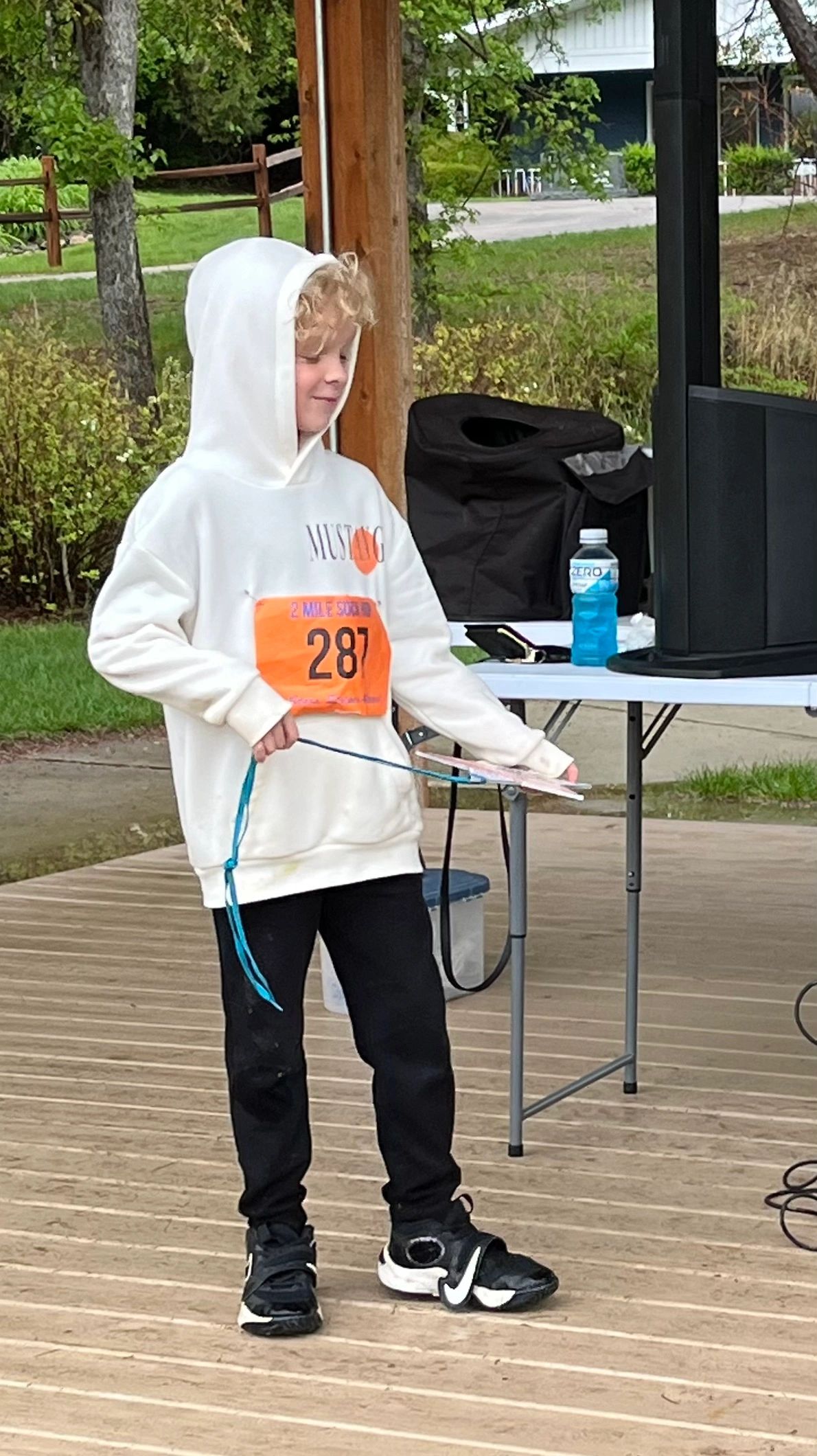PHOTOS NEEDED! Please send us your photos! We want to share them with past and future runners. They are so much fun. Like this shot of Bohdi Johnson receiving his 3rd place award!