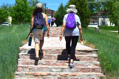 1/2 MARATHON, CANCELED FOR 2025---SEE YOU NEXT YEAR! This route takes you on a challenging tour of the steeps and steps of Hot Springs and a bit beyond and is not for the faint of heart. There are serious hills to climb as well as a few reasonably flat miles to stretch your legs and take in those astounding Hot Springs vistas. And of course 744 steps to climb on five town core staircases and the one private staircase in what we like to call the "outer limits" (PRIVATE STAIRCASE NOT ACCESSIBLE IN 2022). This route is mostly on paved walkways, streets and highways but also includes a bit of meadow) and a few gravel roads. THIS IS NOT WALKER FRIENDLY. COURSE CLOSES AT 2:00 P.M. You will be supported in the town center with the same water stations as the shorter routes, and in the outer limits there will be roving support cars with water, encouragement and a bail-out ride if you need it. (But you won't need it 'cause you are training, right?)